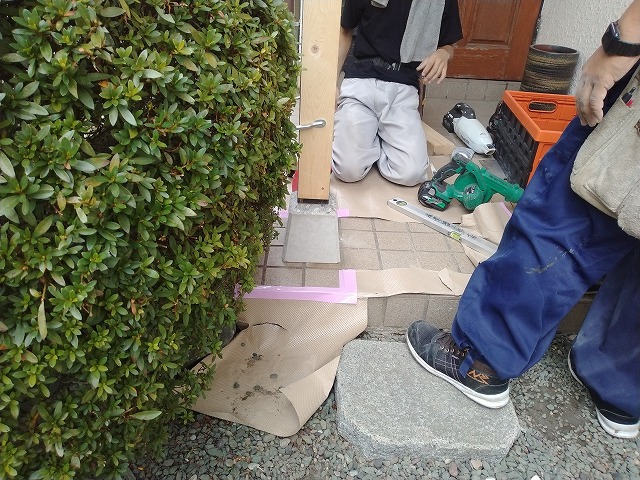 本日は、玄関柱の基礎束石の交換などを行いました。