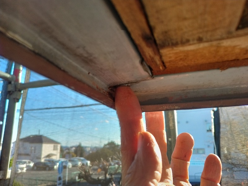 水切りの下がりが浅すぎて上裏に水が回り込んでいた部分の水切りに板金を足して調整しました。
