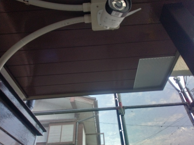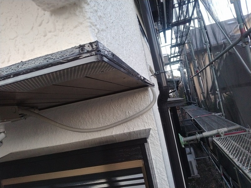 写真は、茶色部分の軒裏の上塗り1回目です。