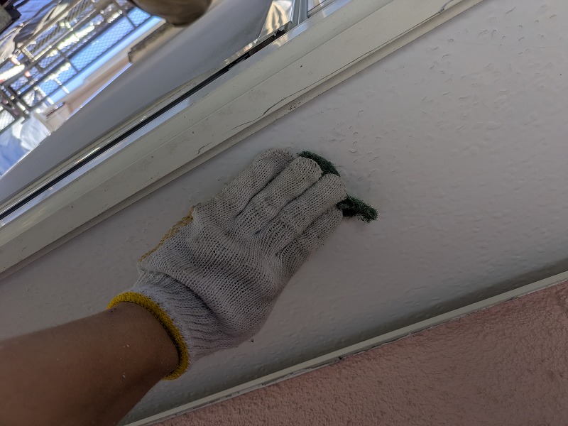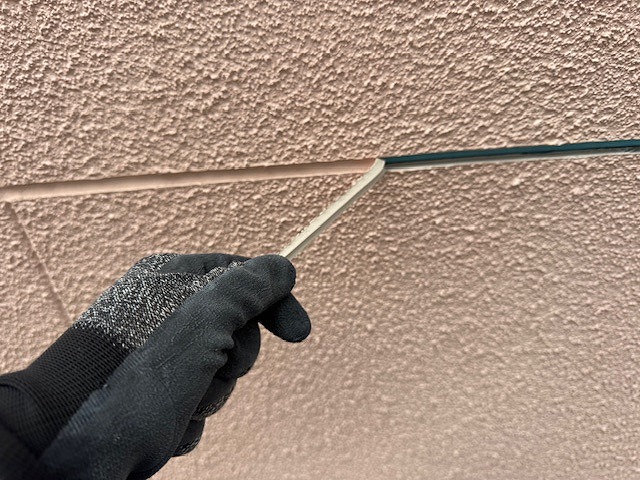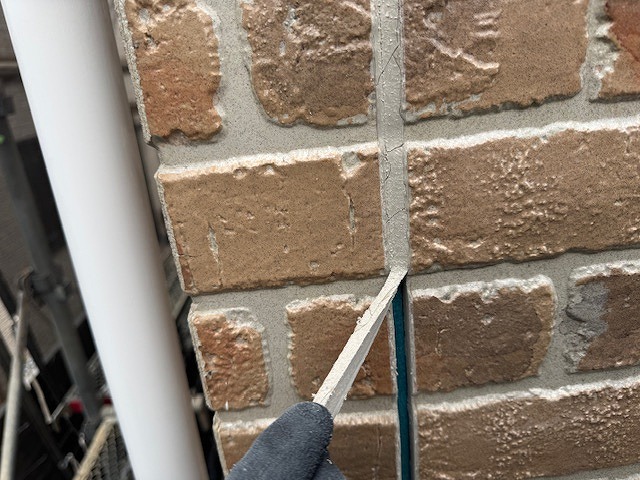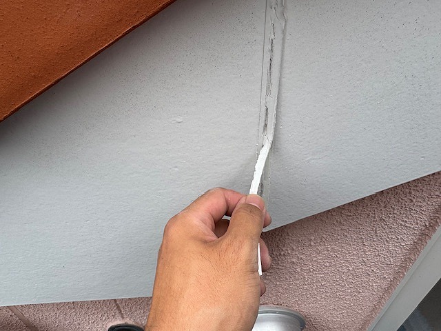 写真は外壁の既存シーリングの撤去です。
