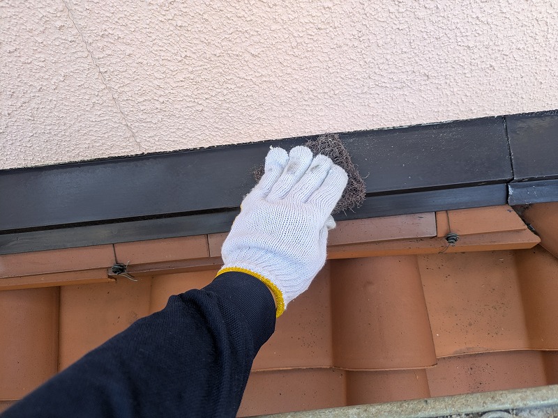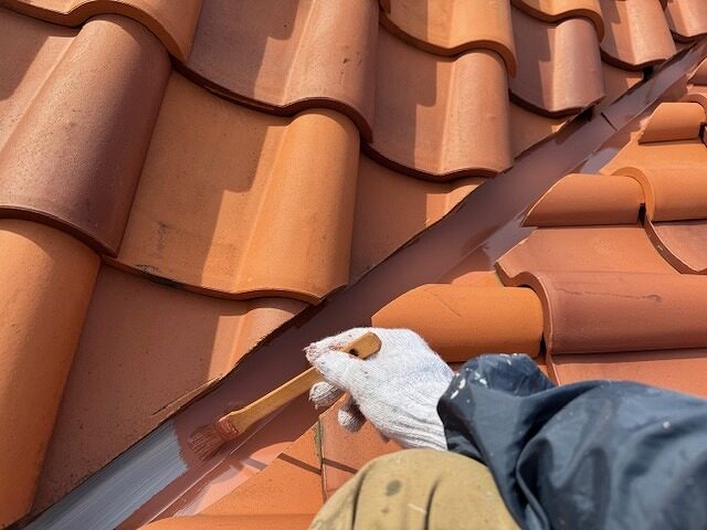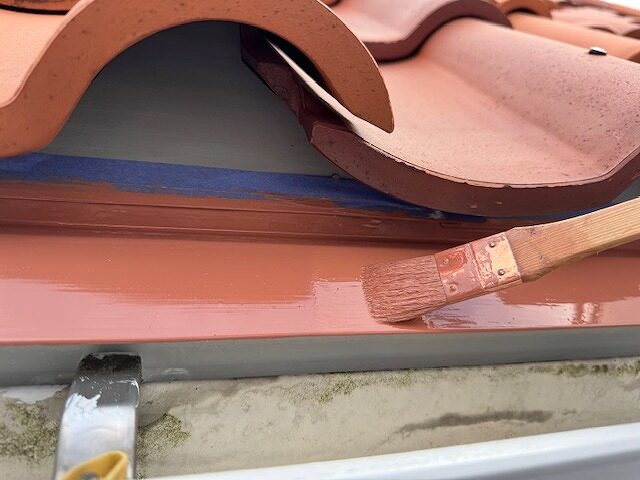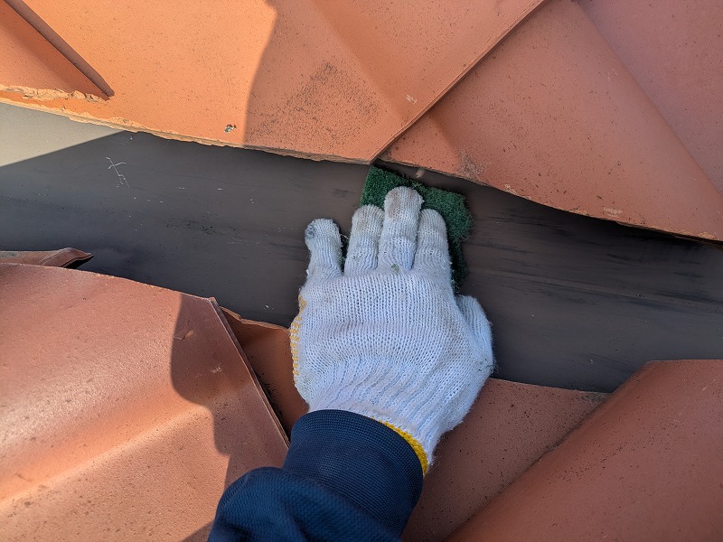 写真は屋根の谷板金のさび止め塗装です。