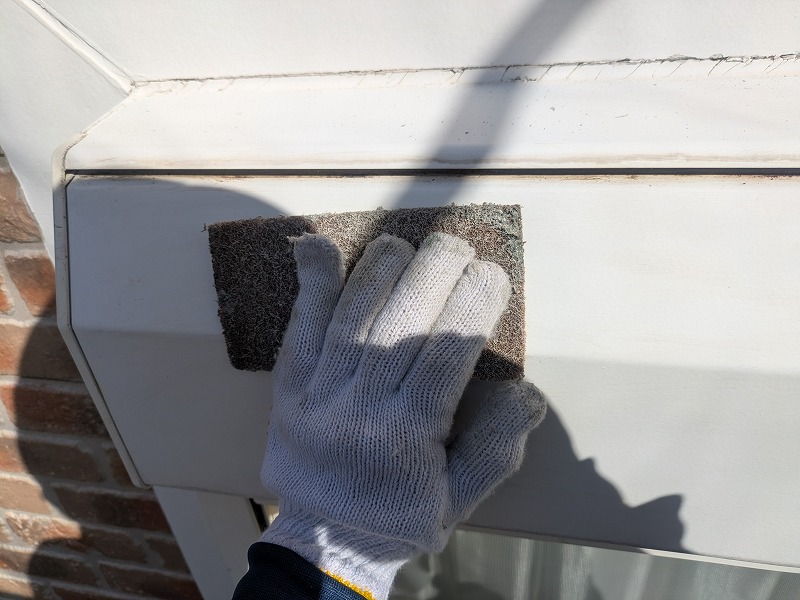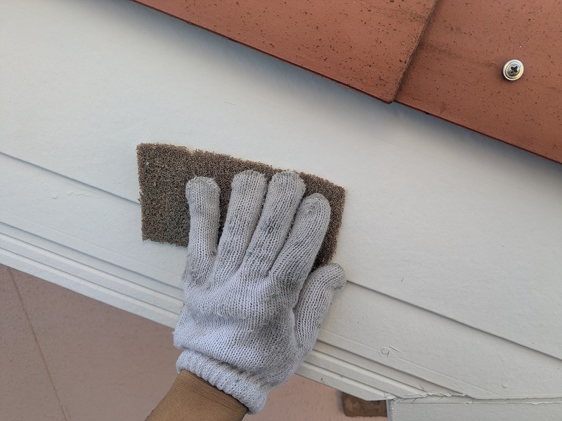 破風のジョイント部分にプライマーを塗布しています。