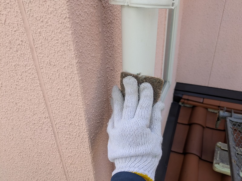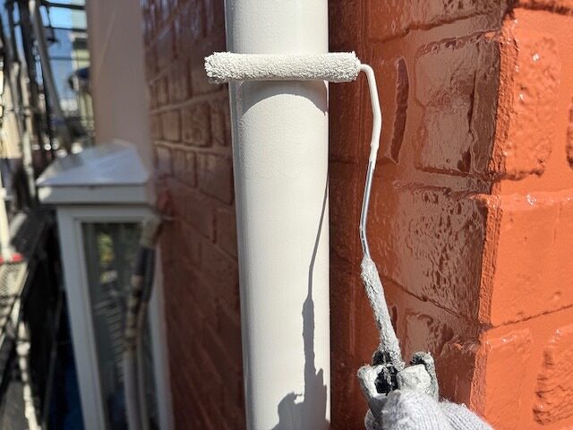 写真は竪樋の上塗り2回目です。