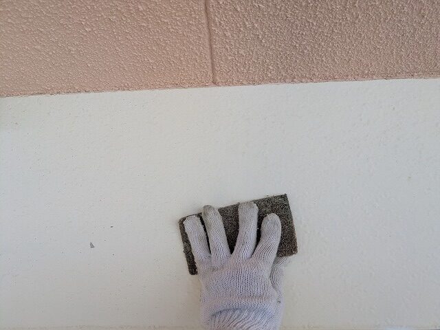 写真は軒裏の上塗り1回目です。