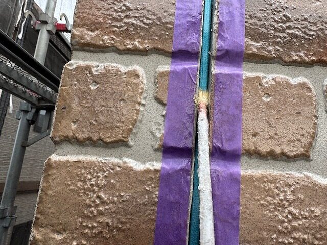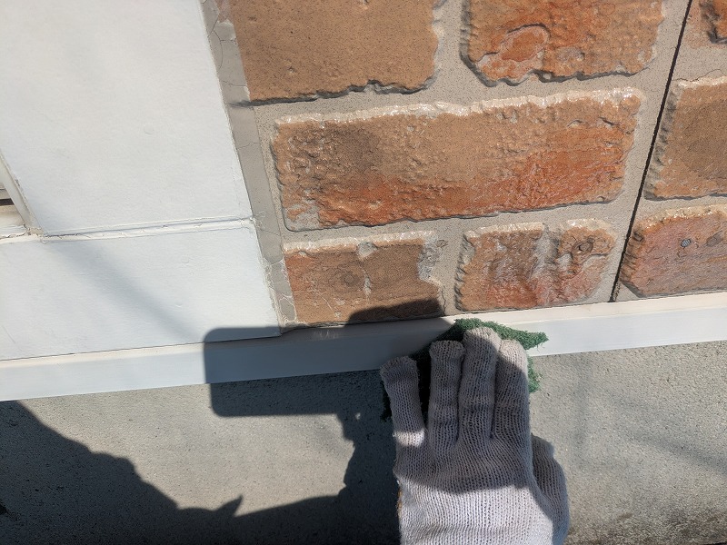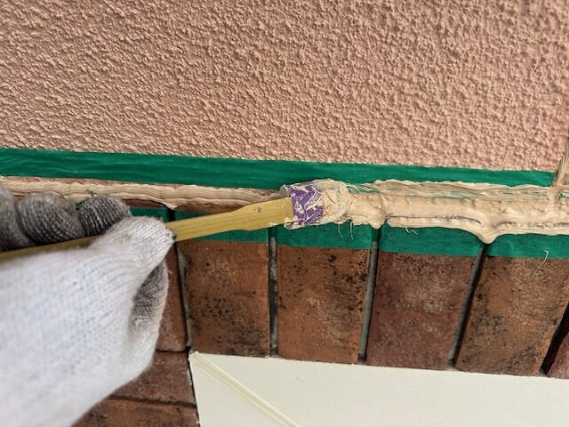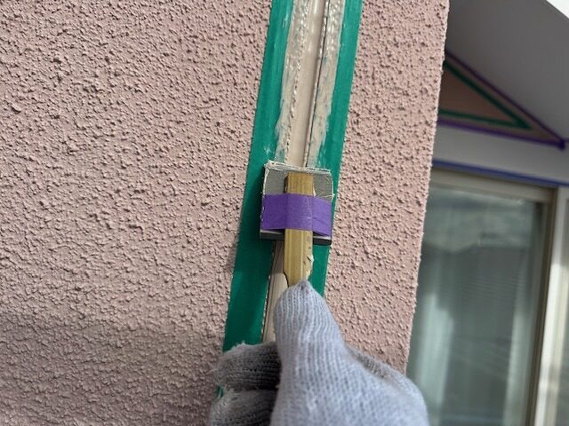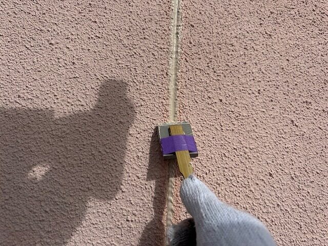 写真はシーリング目地にプライマーを塗布しているところです。