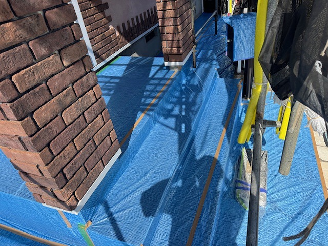 下屋根の養生の状況です。