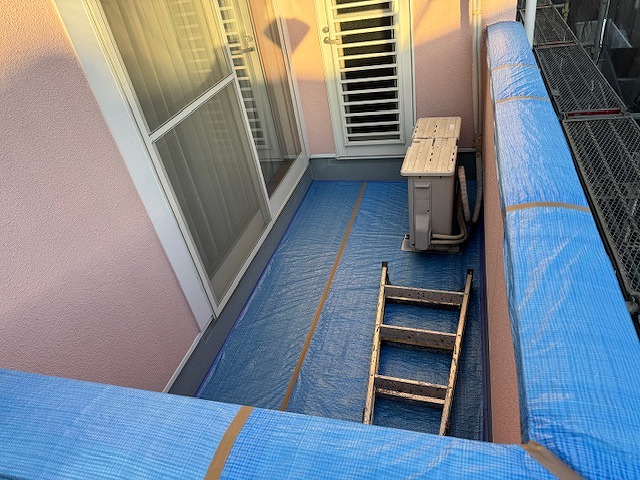バルコニーの養生の状況です。