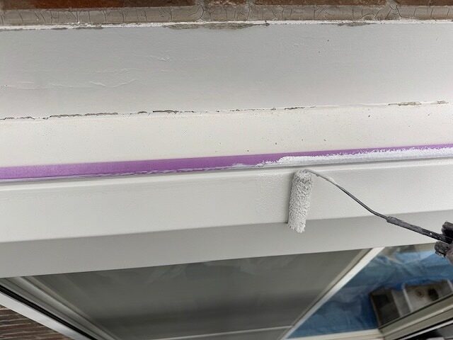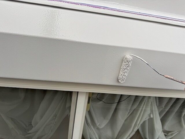 シャッターボックスの上塗り1回目です。
