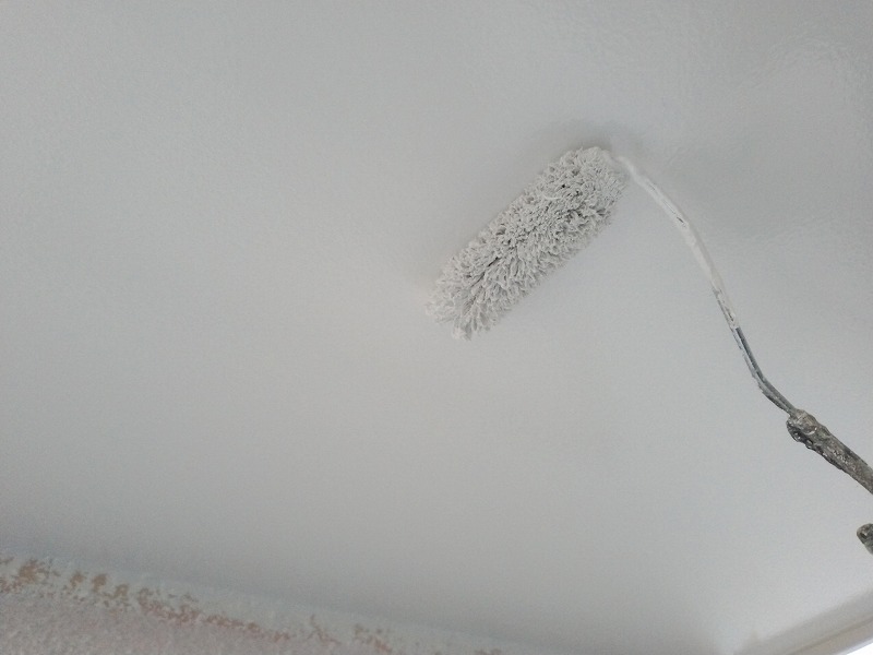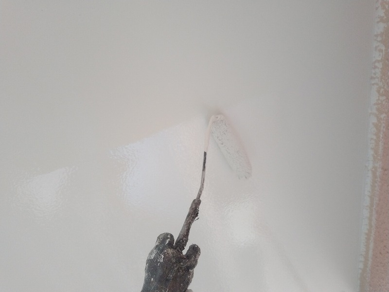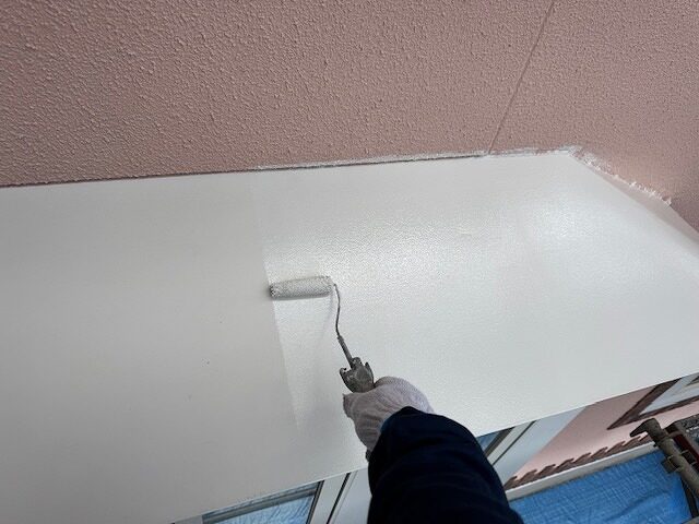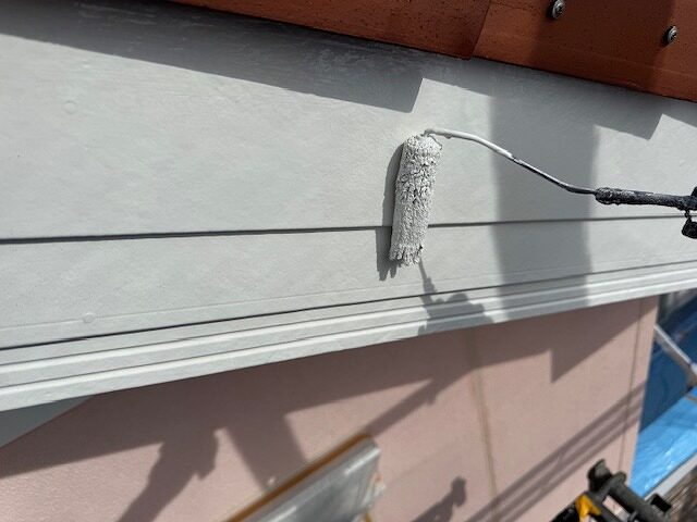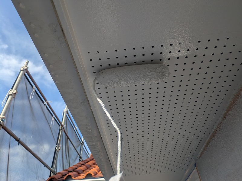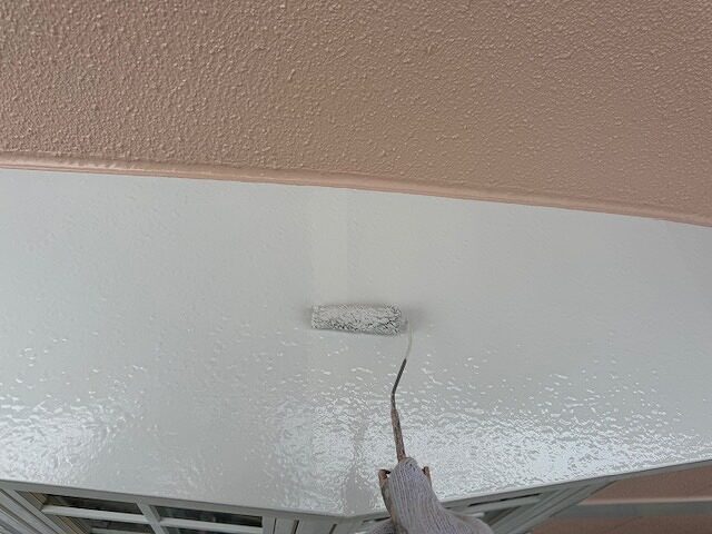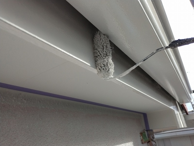 写真は軒裏の上塗り2回目です。