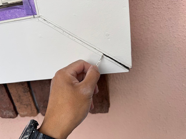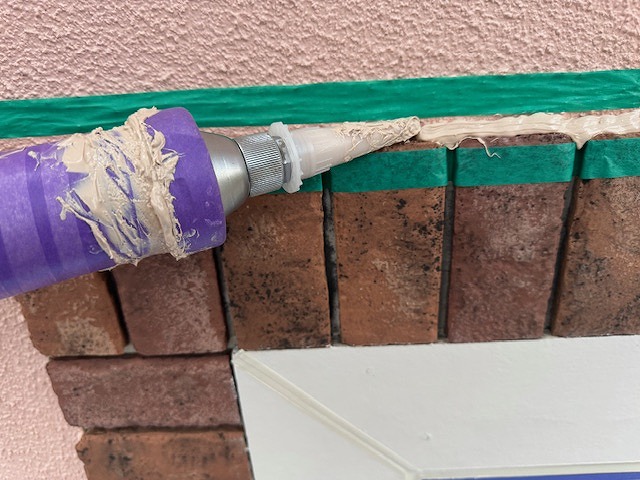 充填したシーリング材を均しています。