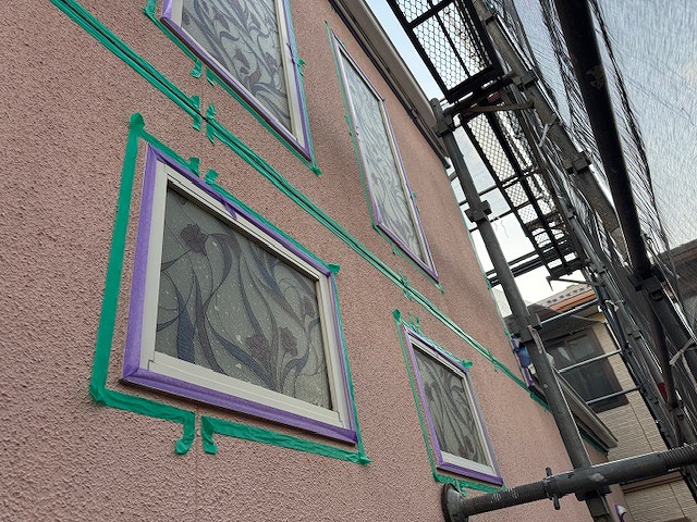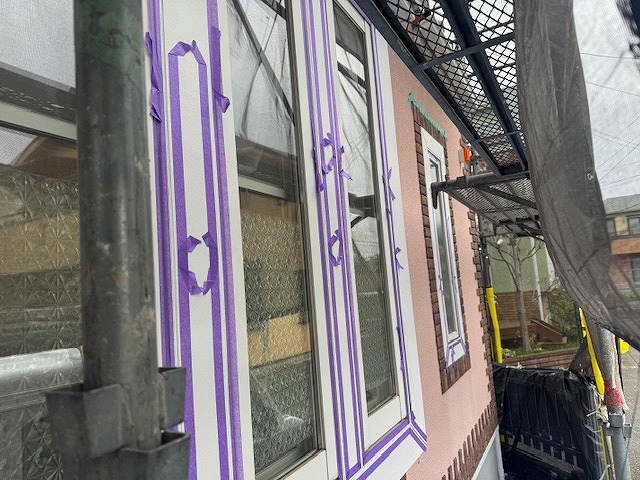 本日は雨の影響で午後から作業を行い、サッシ、モール間のシーリング用養生などを行いました。