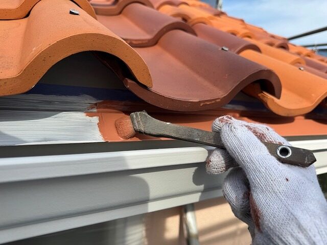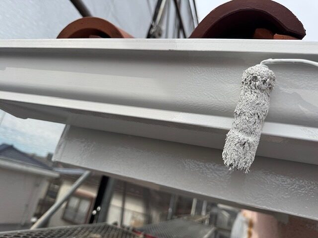 屋根先水切り板金のさび止め塗装です。