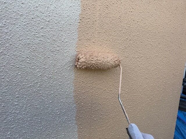 写真は外壁の上塗り1回目です。