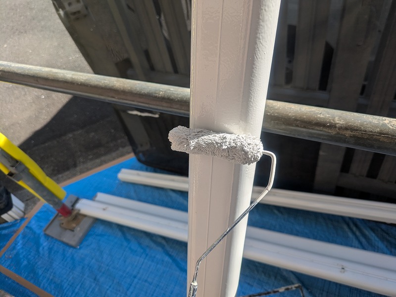 写真は竪樋の上塗り1回目です。