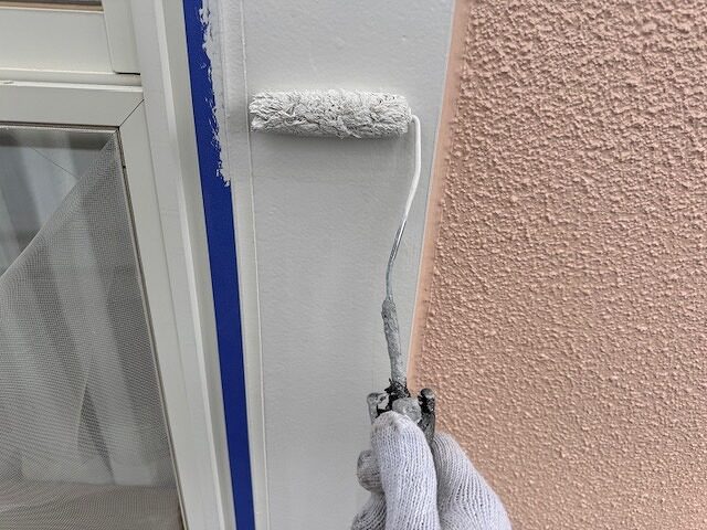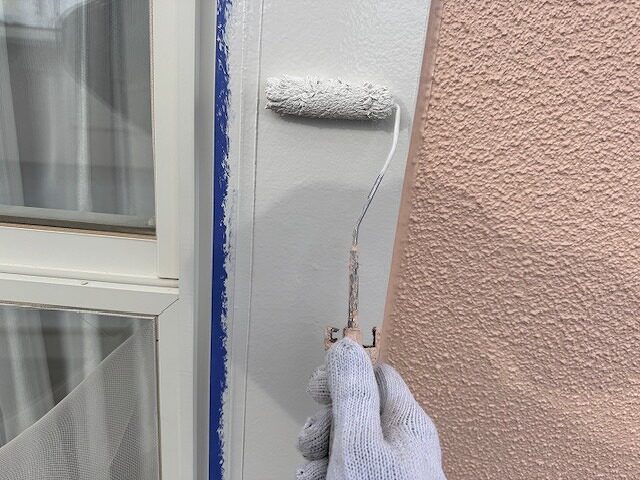 写真は外壁の上塗り2回目です。