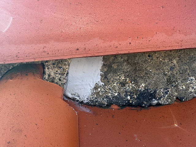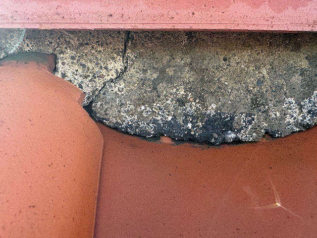 屋根漆喰のひび割れ状況です。
