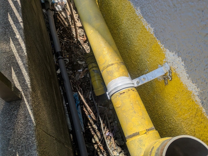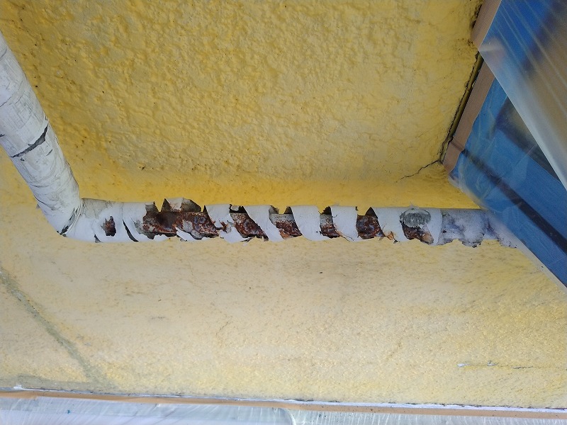 横向きのため、防護管を巻くことで、かえって水がたまり、サビを誘発していたようです。