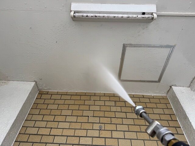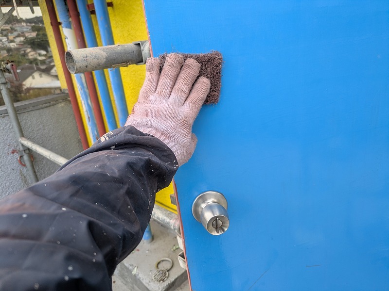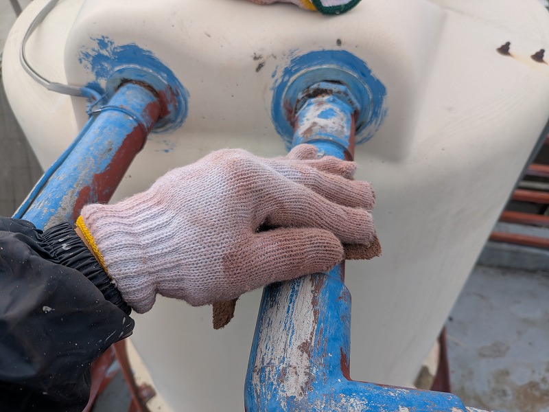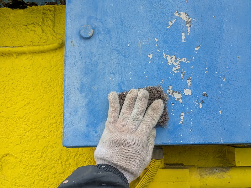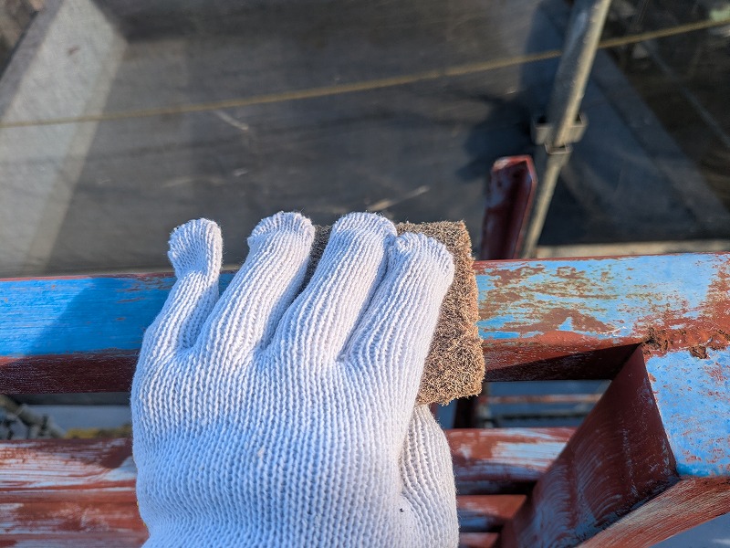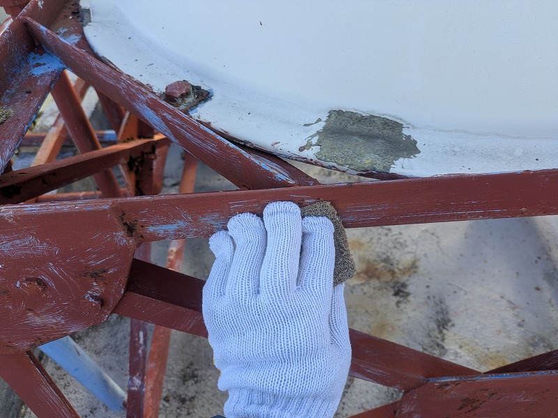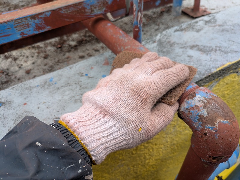 本日は鉄部や配管などのケレン(目荒らし及びさび落とし)などを行いました。