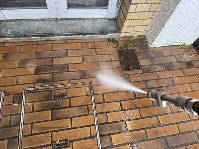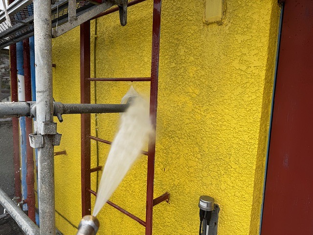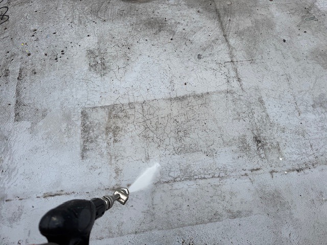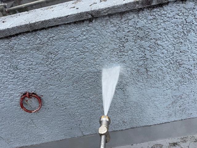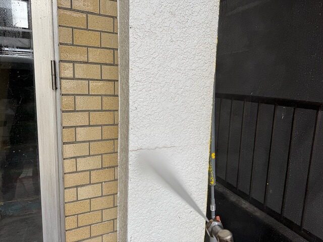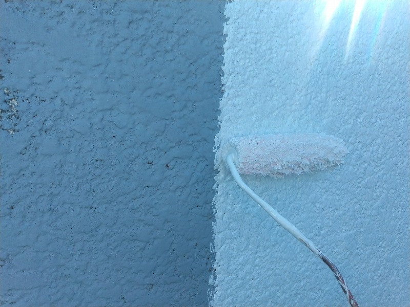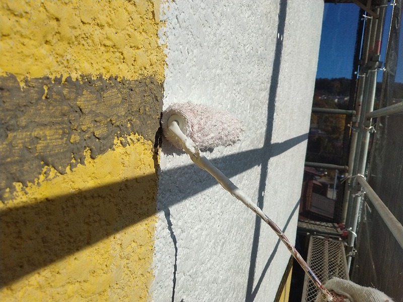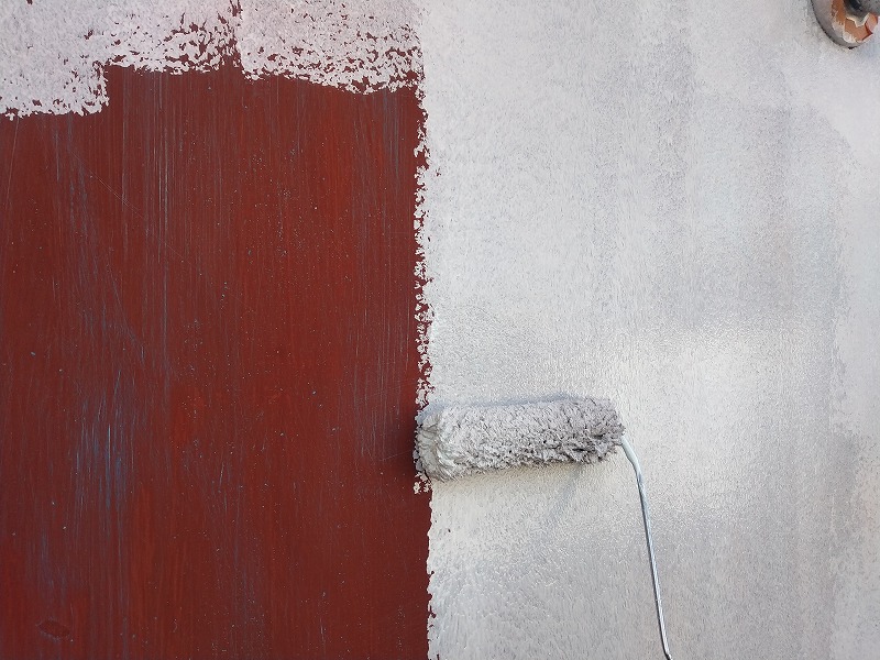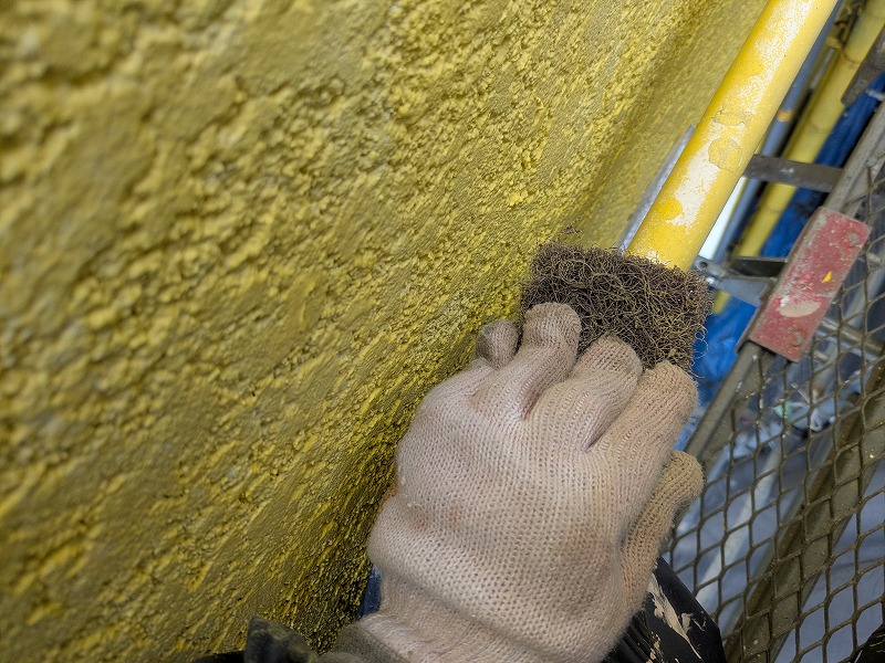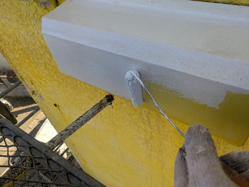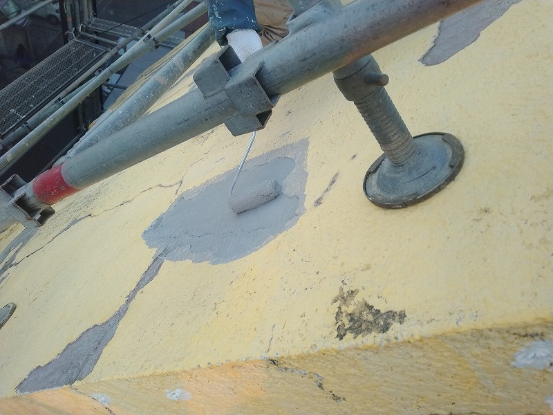 モルタルを撤去した箇所に下地調整材を塗布しています。