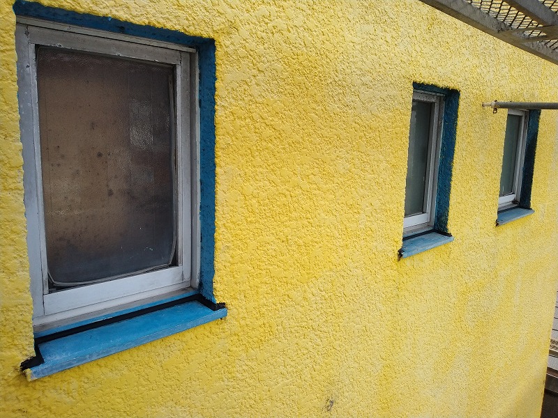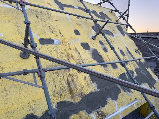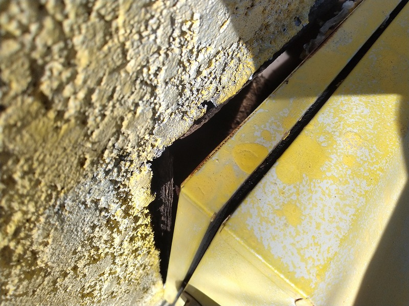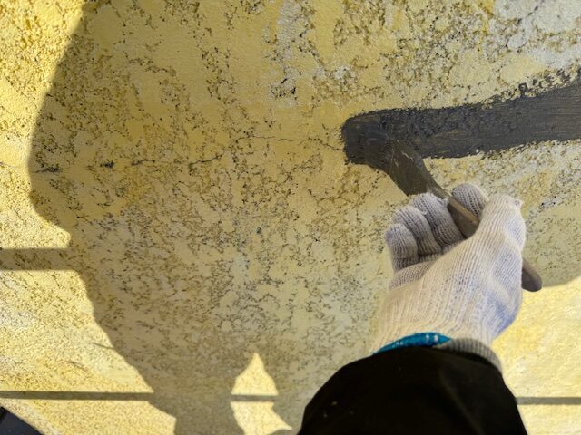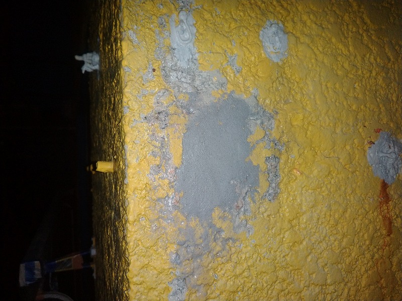 シーリング材の硬化後、モルタルが剥がれた個所にセメントフィラーを塗布しました。