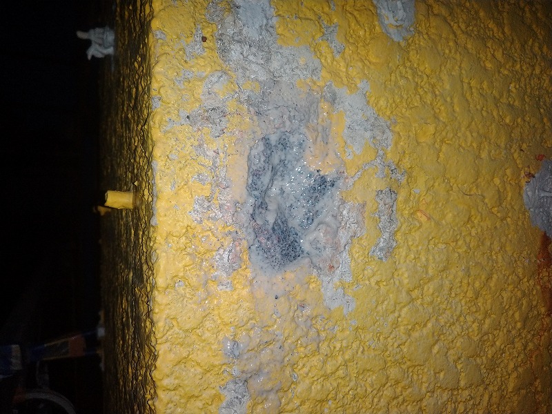 写真は斜壁の浮いたモルタル部分を剥がしているところです。