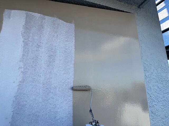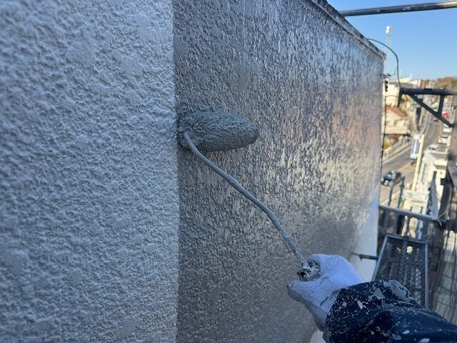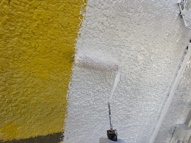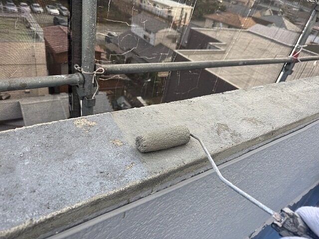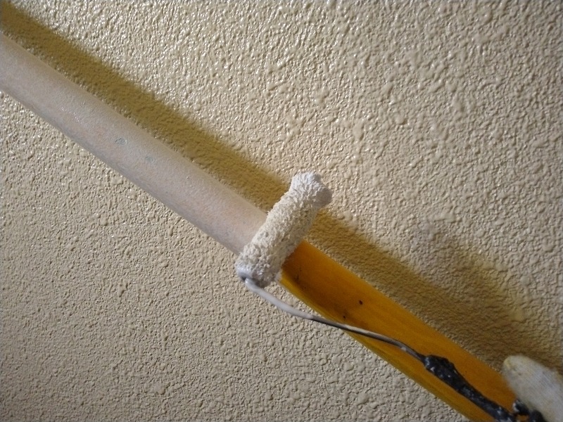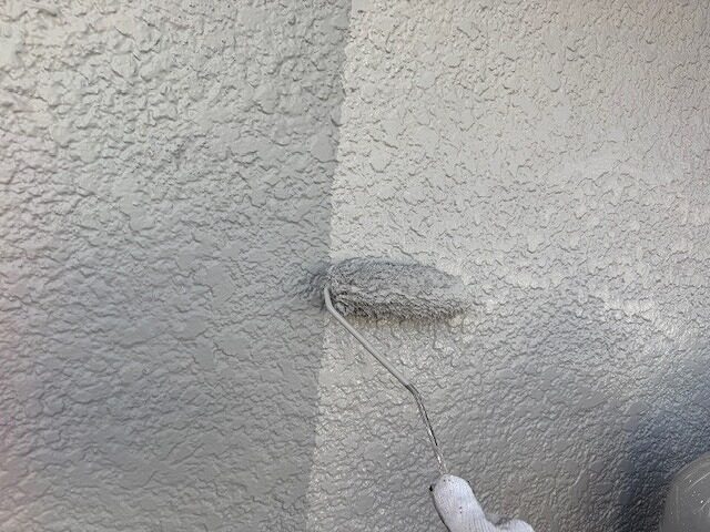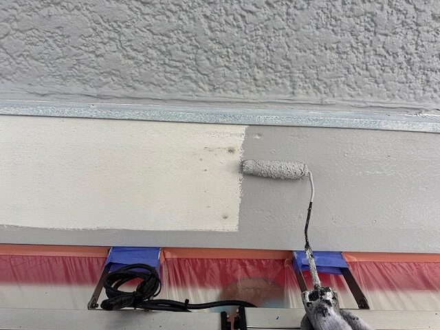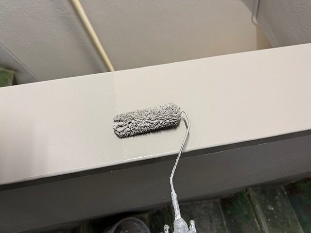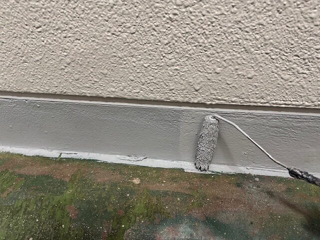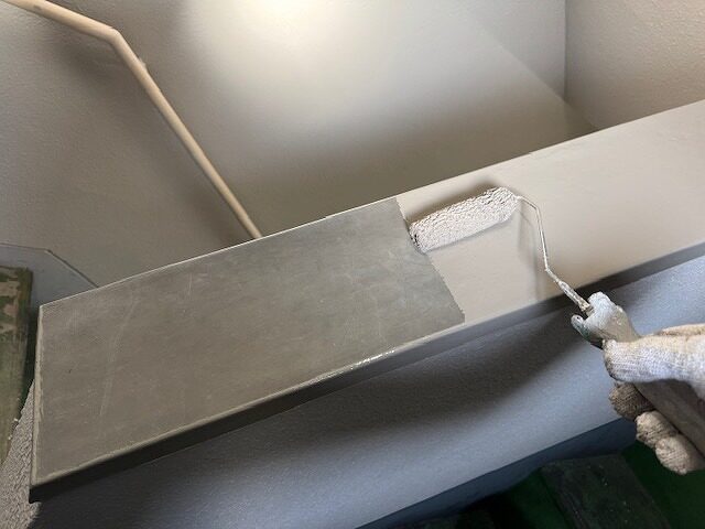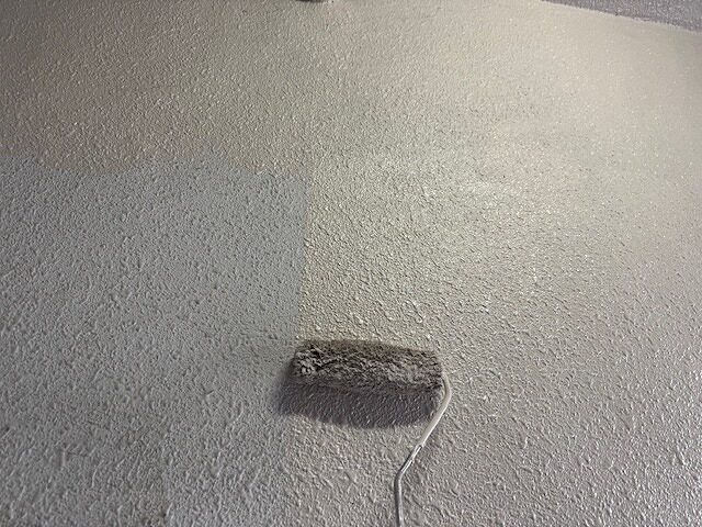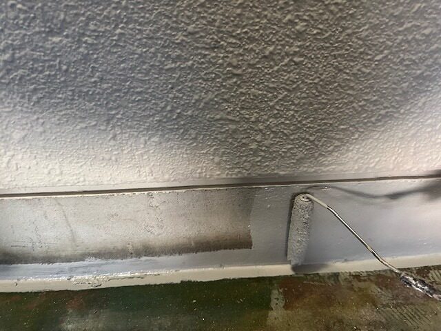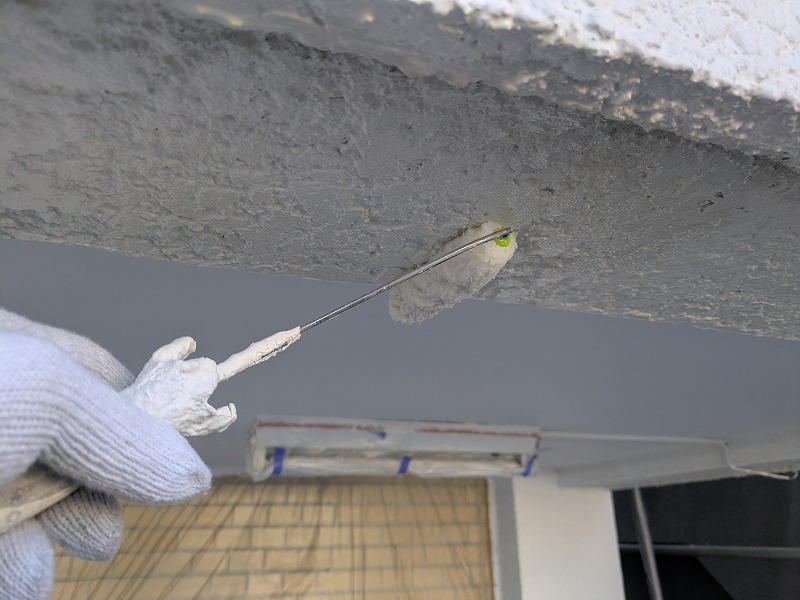 写真は上裏のモルタル部分にシーラーを塗布しているところです。
