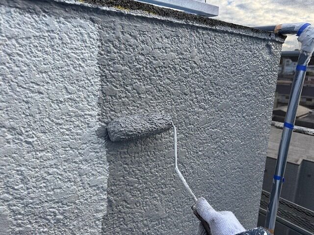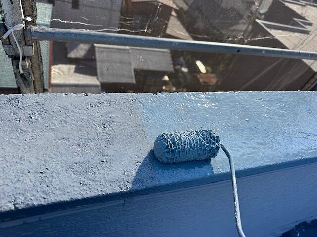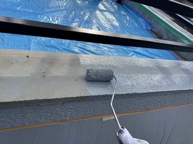 手すり壁天端の上塗り2回目です。