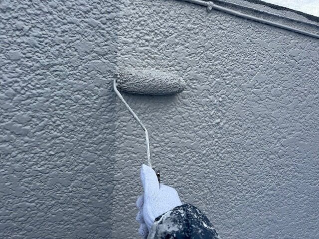 写真は外壁の上塗り2回目です。