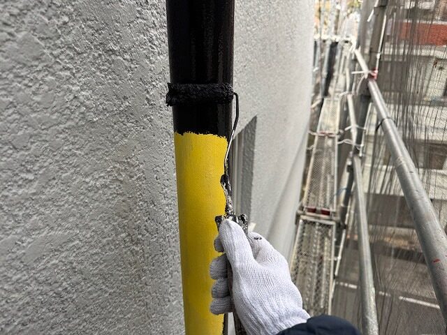 写真は屋上の丸環のさび止め塗装です。
