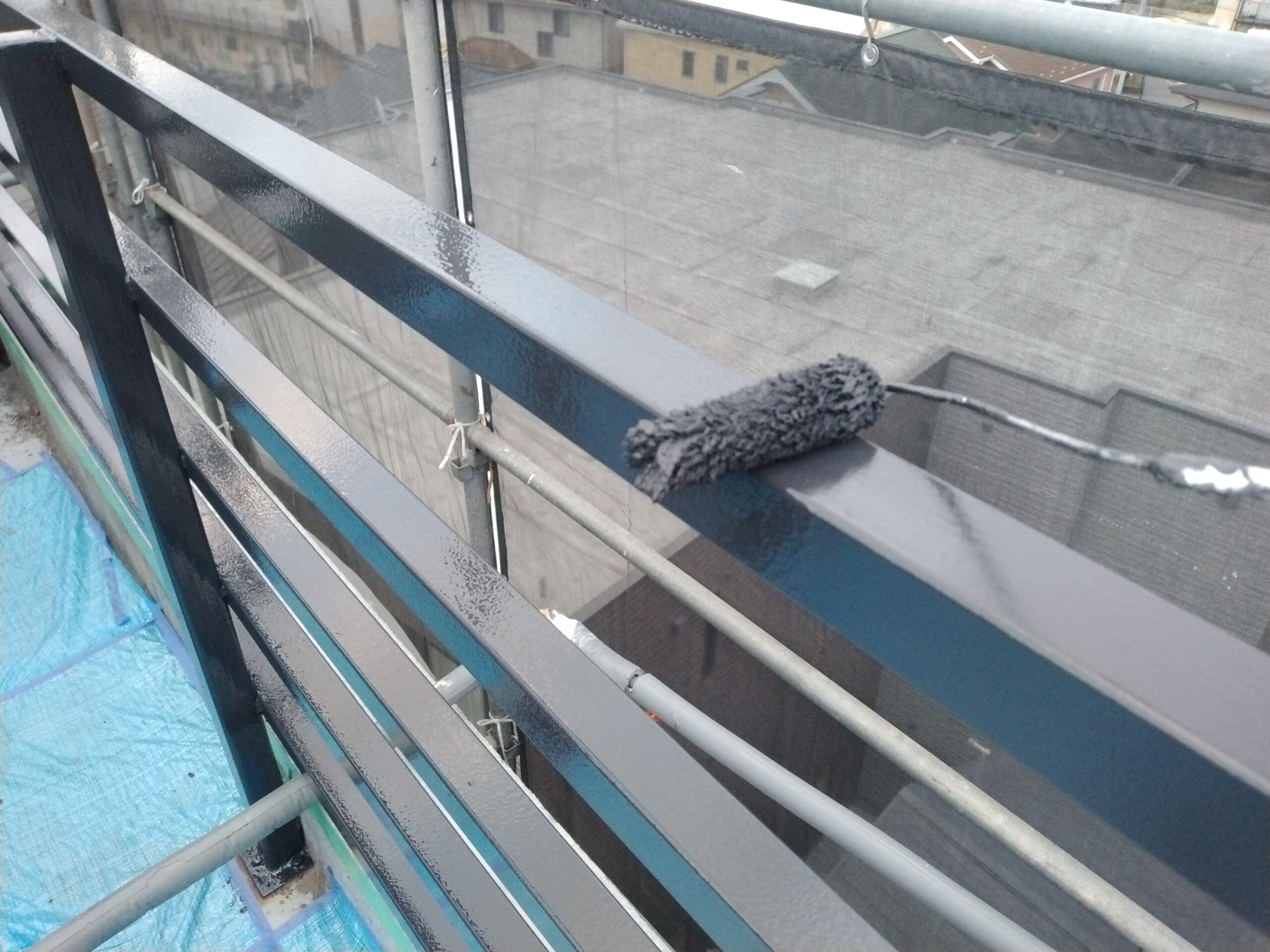 塔屋フェンスの上塗り2回目です。