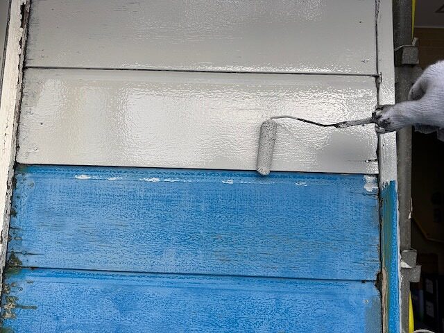 写真は鉄扉の上塗り1回目です。