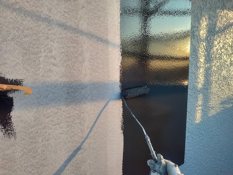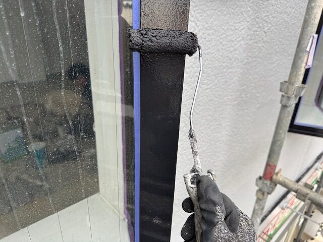 サッシ枠の上塗り2回目です。