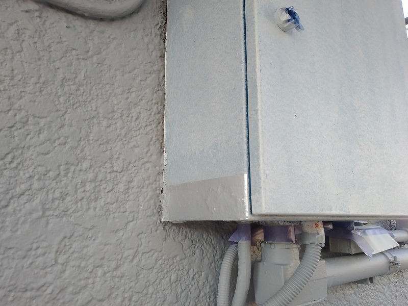 写真は1階の配電ボックスの上塗り1回目です。