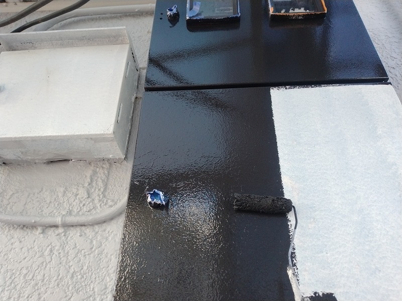 屋上の配電ボックスの上塗り1回目です。