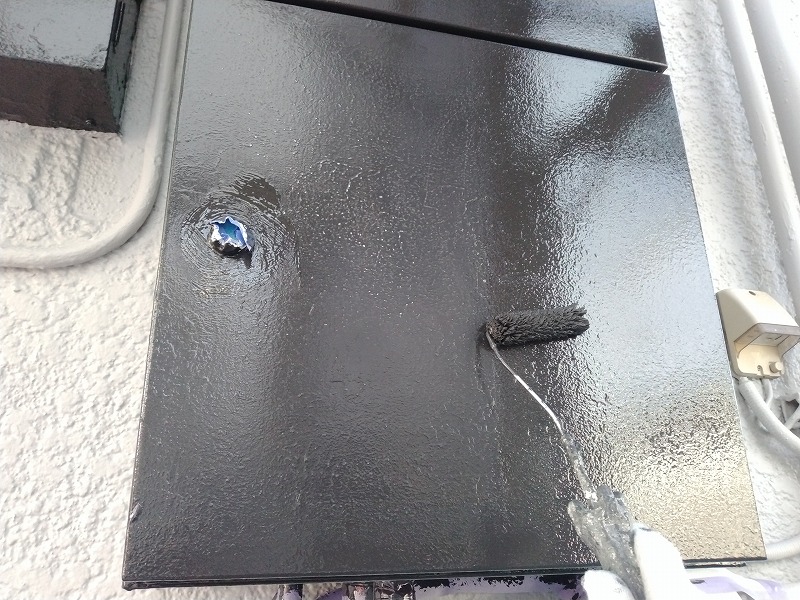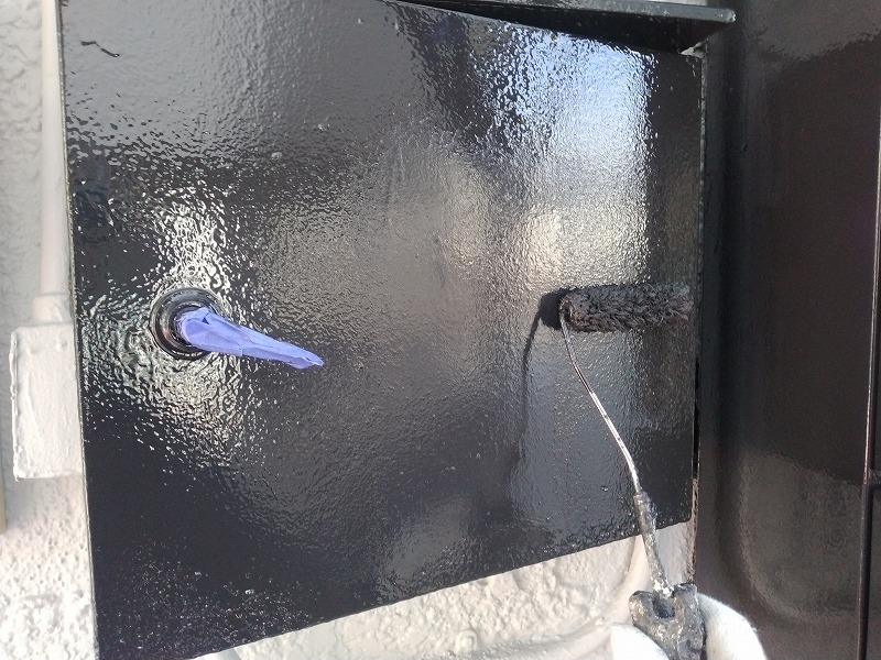 写真は配電ボックスの上塗り2回目です。