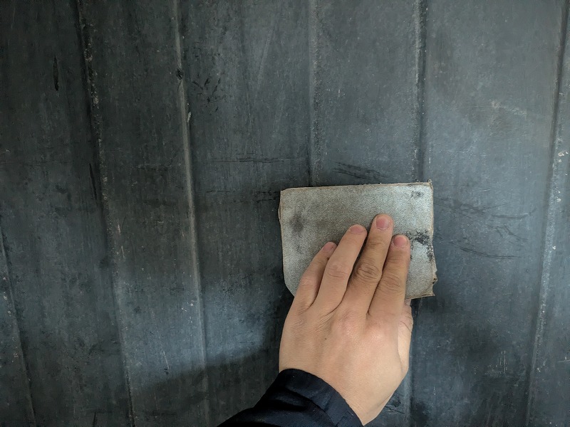 鉄扉のさび止め塗装です。