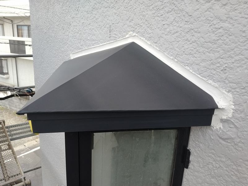 本日は三角出窓の屋根板金のシーリング処理や残りの付帯部の塗装などを行いました。