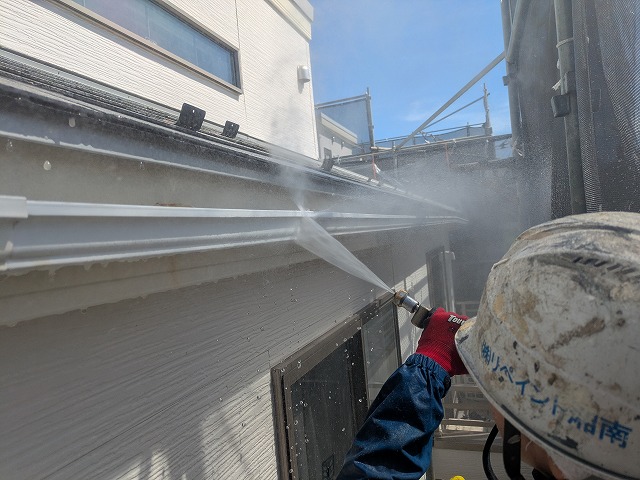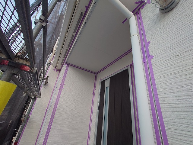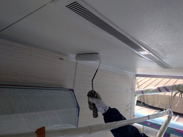 本日は、軒裏の上塗り1回目及び2回目、外壁の下塗り及び上塗り1回目などを行いました。
