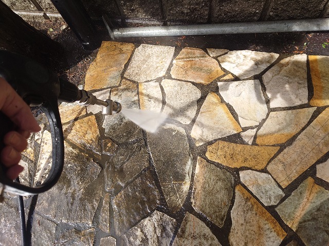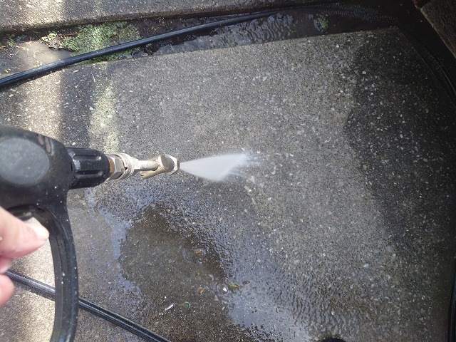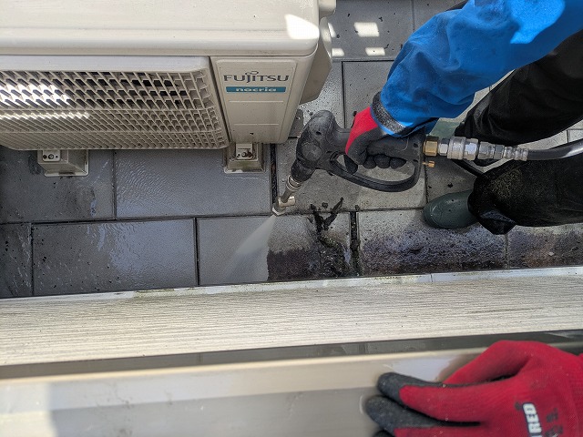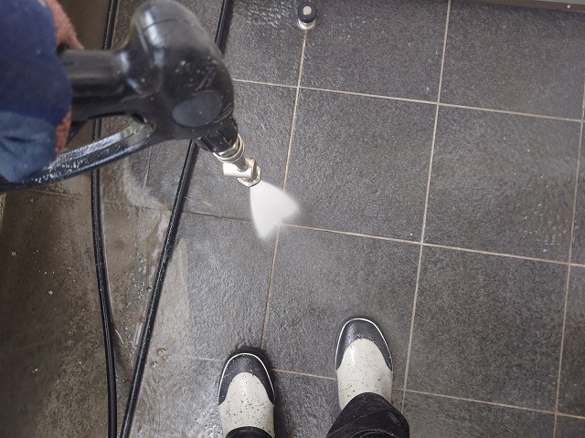 バルコニー床タイル下クッション材の高圧洗浄です。