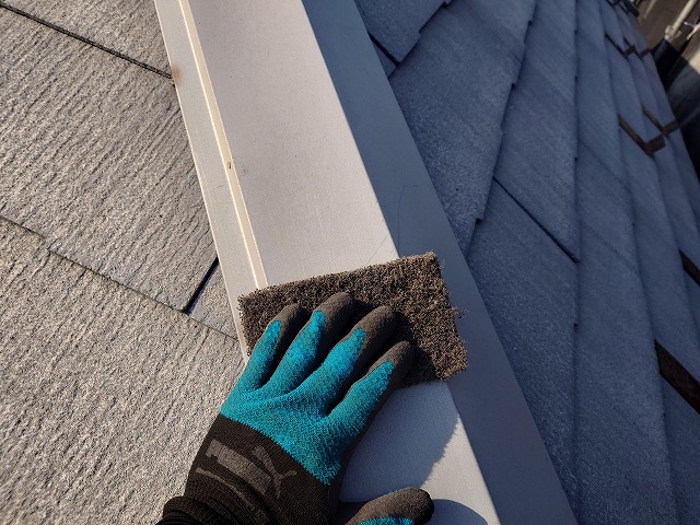 写真は、棟包みと呼ばれる屋根板金のケレン・目荒しです。