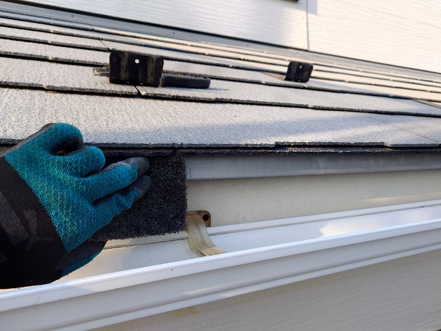 この部材を挿入することで、屋根材の重なり部分を強制的に隙間を空けることができ、雨水などの排水が円滑に行われるようになります。