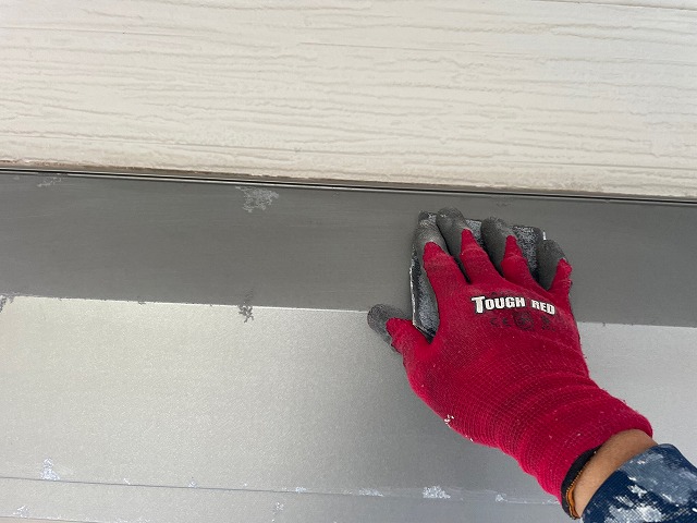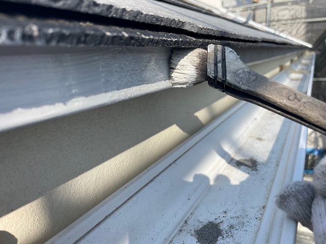 唐草と呼ばれる軒先水切り板金のサビ止め塗装です。