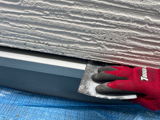 写真は、新規シーリング打ち均し用の養生の様子です。