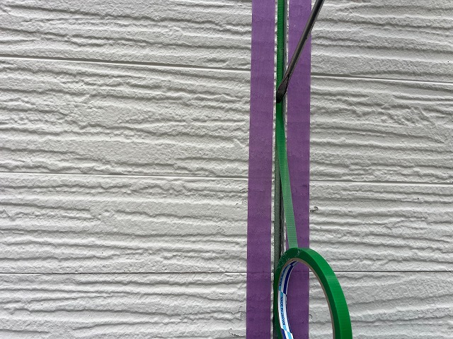 写真は、外壁目地の底面へ絶縁テープの貼り付けです。