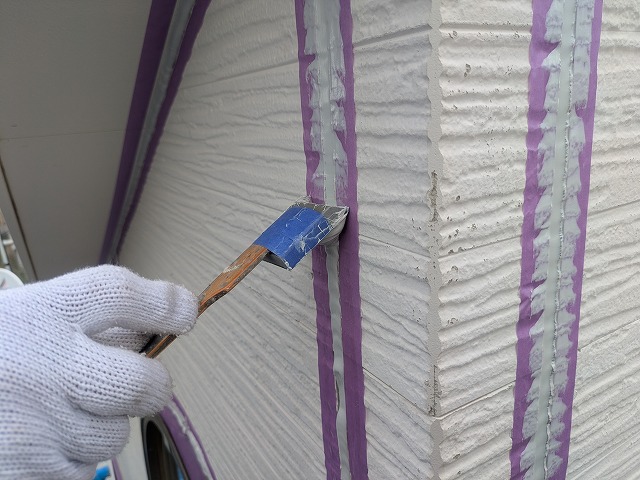 本日は、外壁目地の新規シーリング打ち均しなどを行いました。