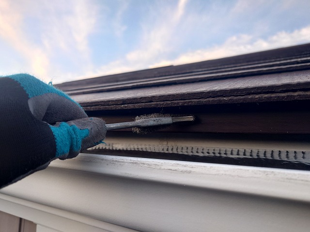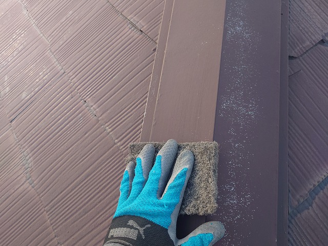 写真は、棟包みと呼ばれる屋根板金のケレン・目荒しです。