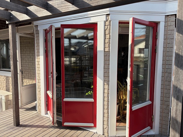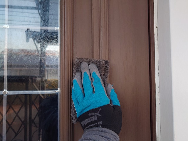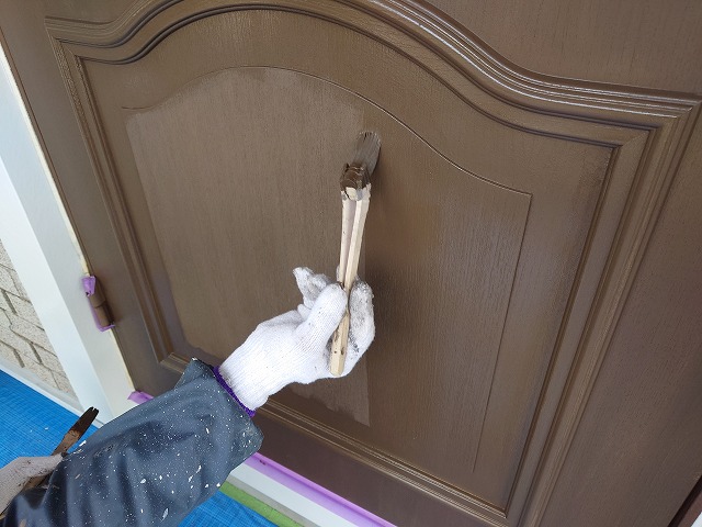 本日、木製ドアの上塗り2回目を行い、全ての塗装工事が完了いたしました。