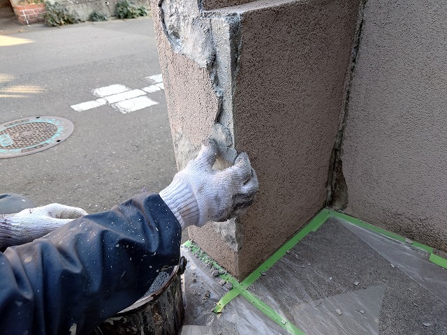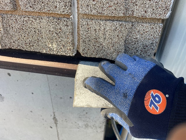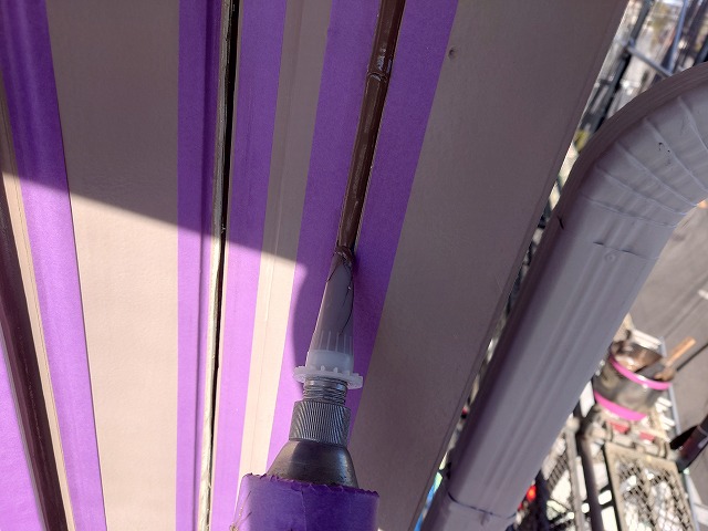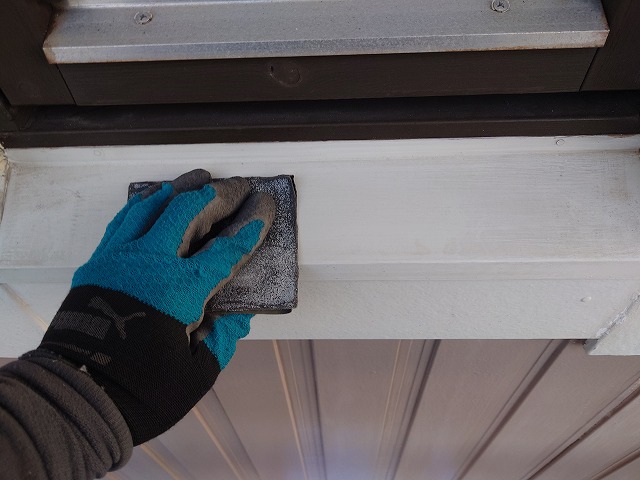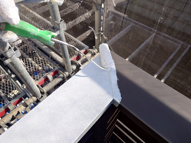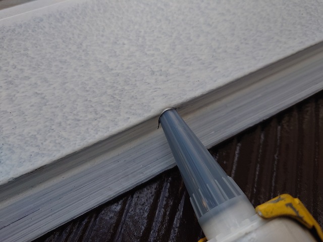 写真は、化粧幕板の新規シーリング打ち均しです。