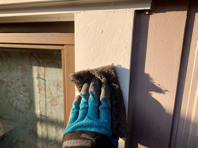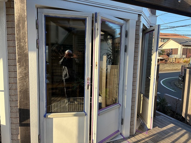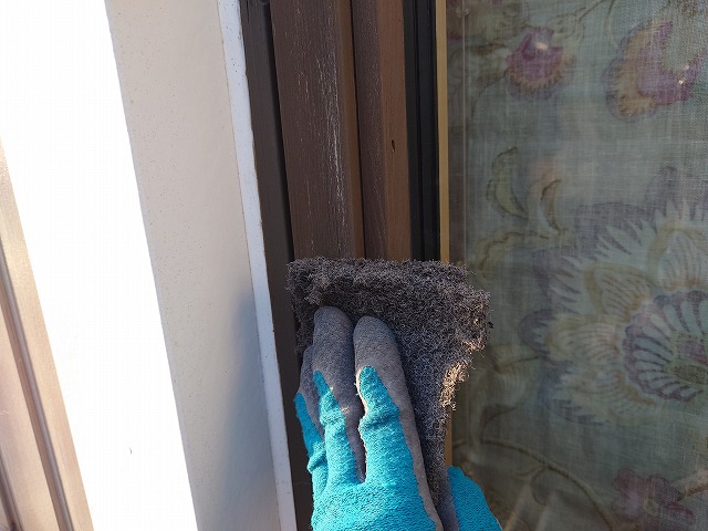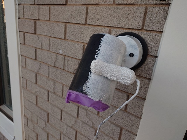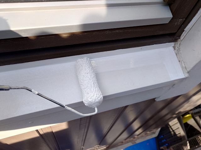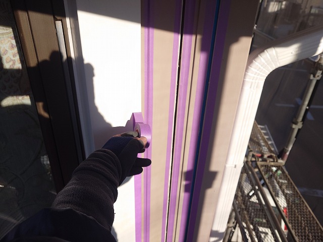 本日は、窓廻りなどの新規シーリング用養生や屋根の上塗り2回目などを行っておりましたが、昨日作業を行ったシーリング打ち均しのシーリング材が乾いておらず、次工程の作業が困難なためお昼ごろに撤収とさせていただきました。