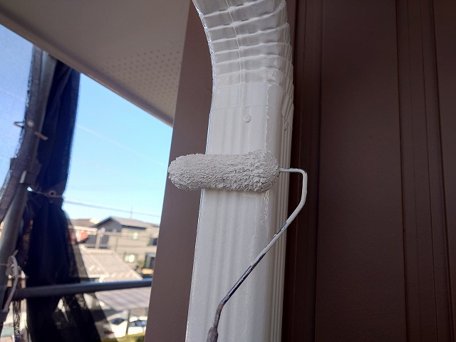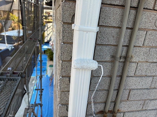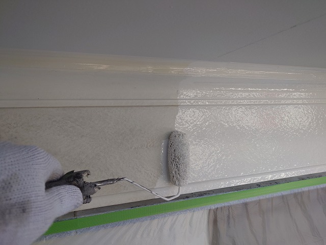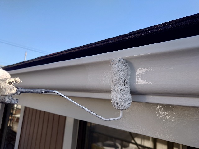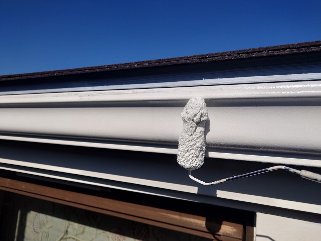 本日は、軒裏の上塗り2回目や各付帯部の上塗り1回目などを行いました。